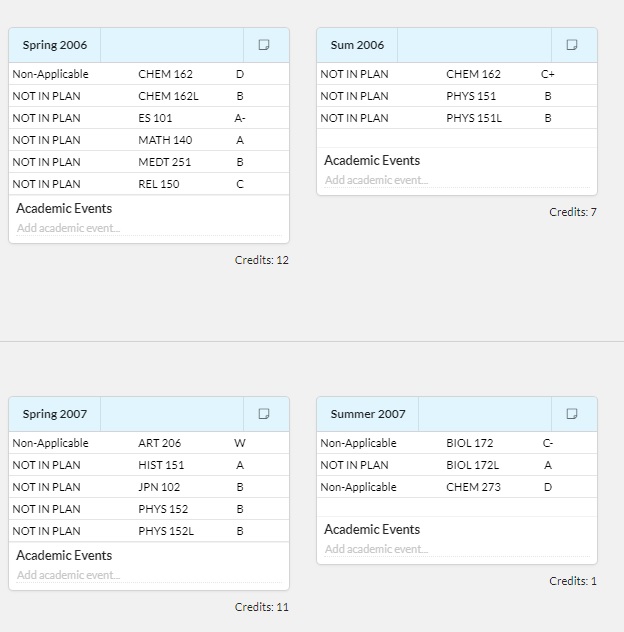Chem 162 Grade D. Took it again and got a C+. Took Chem 273 and got a D. I could’ve quit there, but I determine there was a lot of things happen and one is that I didn’t work hard enough.